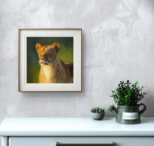 Golden Horizon: Lioness's Gaze | Oil on canvas